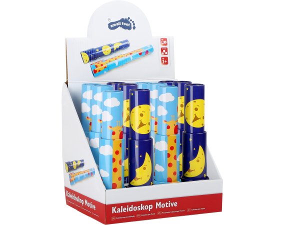 Når barnet kikker inn i rører og dreier det, vises forskjellige mønstre i forskjellige farger.