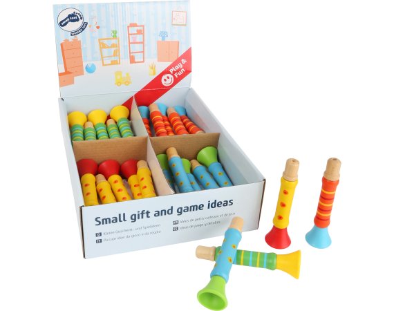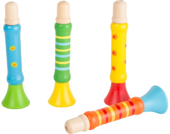 Her får du 24 flott malte trompeter som ligger godt i hånden, så store som små kan få den til å spille morsomme lyder.Musikk utvikler barnets rytmiske ferdigheter og kan være med på å gi samhørighet og styrke barnets glede av musikk.