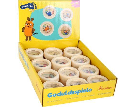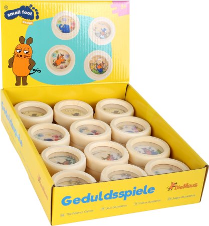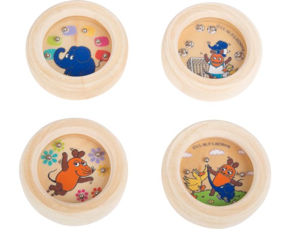 Sett med 24 morsomme små elefant med fem forskjellige motiver med en liten mus, and og elefantMinilabyring spill er ideelle til lange bilturer eller på toget.