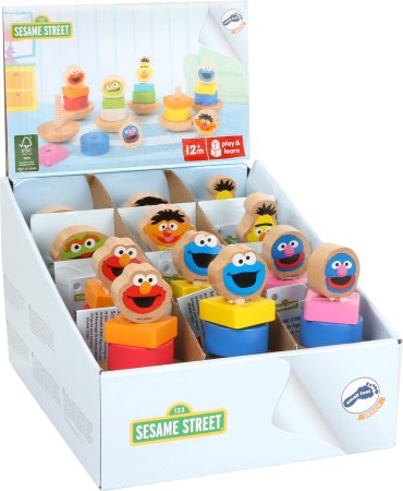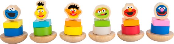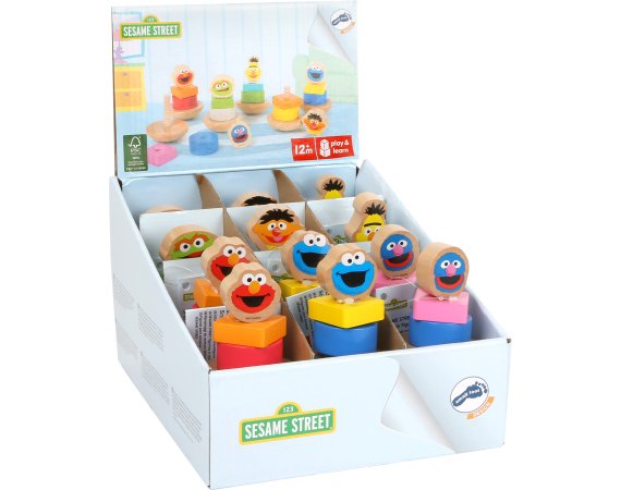 Sett med 12 morsomme figurer fra Sesame Street, som alle venter på å bli skrudd på den vaklende sokkelen. En morsom og hyggelig oppgave som krever litt konsentrasjon, når man er liten!Settet kan brukes til mange forskjellige anledninger og til institusjonsbruk for små barn.