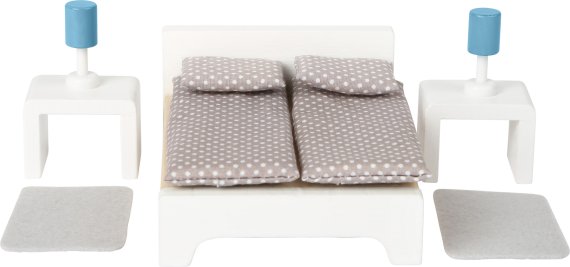 Møbelsettet har flotte delivetr; som et toalett som kan åpnes og lukkes, tepper og filtputer, magisk sengetøy, et funksjonelt speil, og skyvedør på både TV- og kjøkkenbenken.
