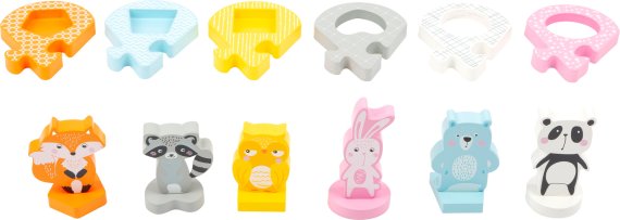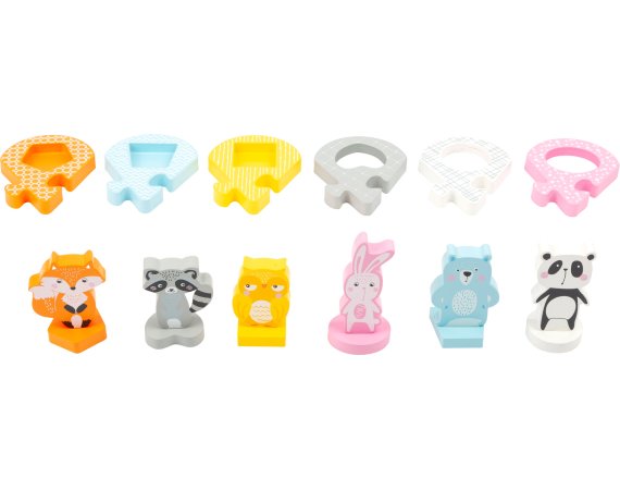 Morsomt puslespill med geometriske figurerEt hyggelig og litt annerledes puslespill; hvor oppgaven er å sette sammen puslespillet, samtidig som man skal plassere de forskjellige dyrefigurene på kronbladene med de riktige fargene.