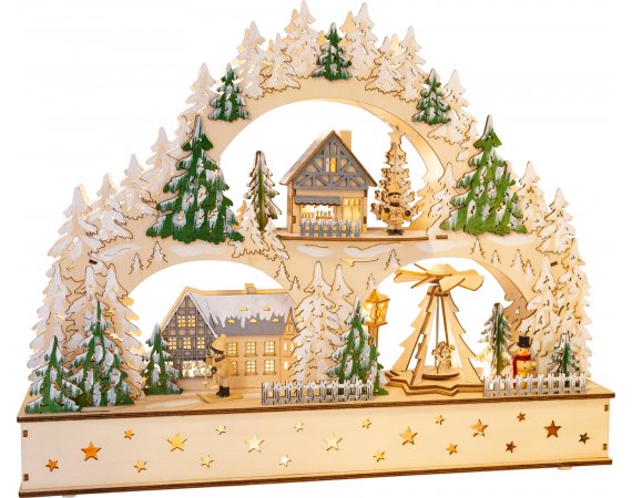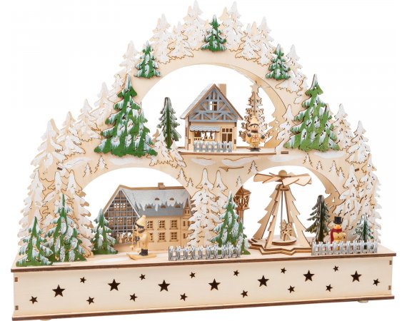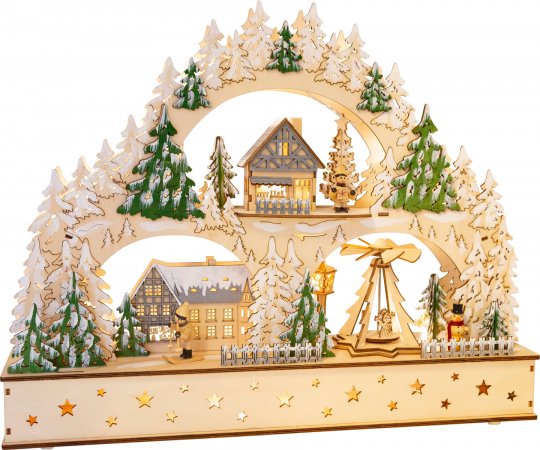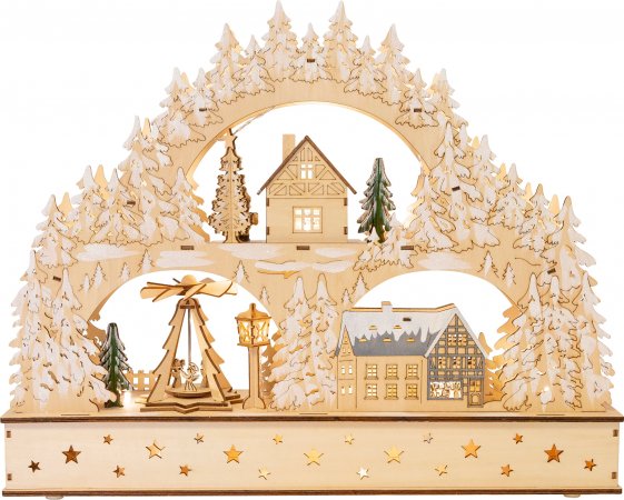 Tidløs og dekorativ klassiker!Denne store julearkaden av tre er ikke bare et dekorativt blikkfang. Den har nemlig både belysning og lydfunksjon! Den elektrisitet-drevne julepyramiden roterer sakte rundt og skaper en spesiell julestemning.