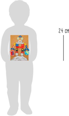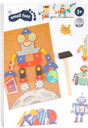 Et korkbrett, en trehammer, små tegnestifter, fargerike trebiter, figurer og fire bildemaler - for skapelse av individuelle kreasjoner - 160 deler totalt.