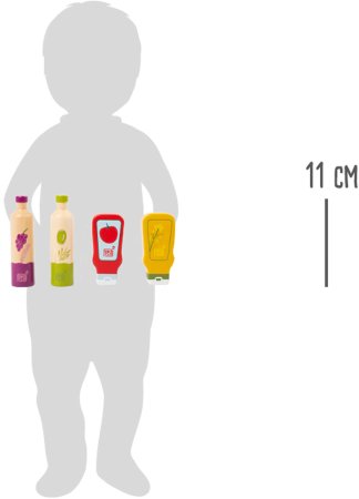 Størrelse ca.: Olivenolje 11 cm, Ø 3 cm, sennep 4 x 2 x 9 cm