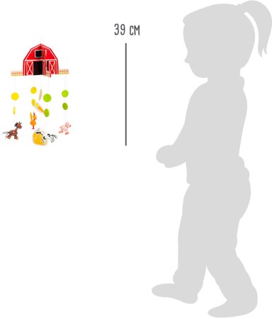 En fantastisk fin uro med artige gårdsdyr, som kan henges over stellebordet, lekegrindedn eller babysengen.Babyer lærer raskt, og de får stor glede av å kikke på noe gjenkjennelig igjen og igjen.