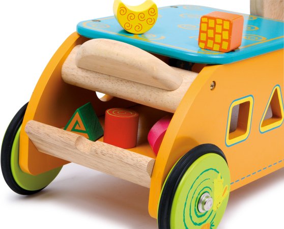 Bilens sider har hull og fungerer som en puttekasse. Det følger med klosser.