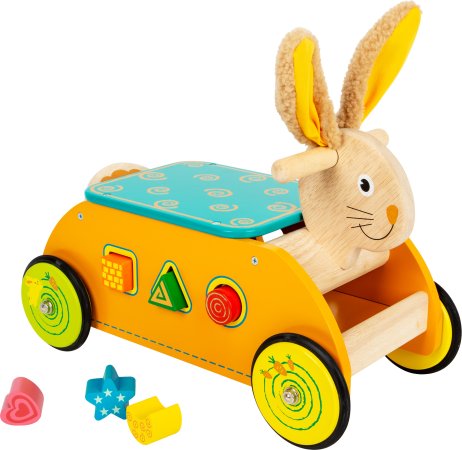 Fantastisk morsom og søt liten kanin gå-kjøretøy med ører i tekstil.Gå-kaninen er fremstilt i robust tre.