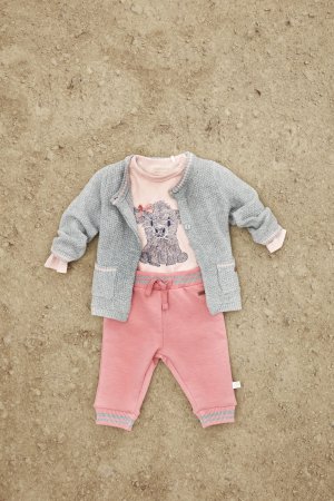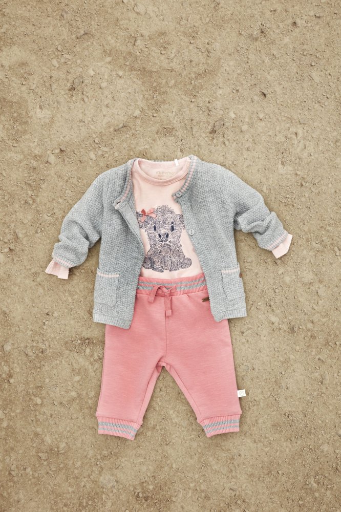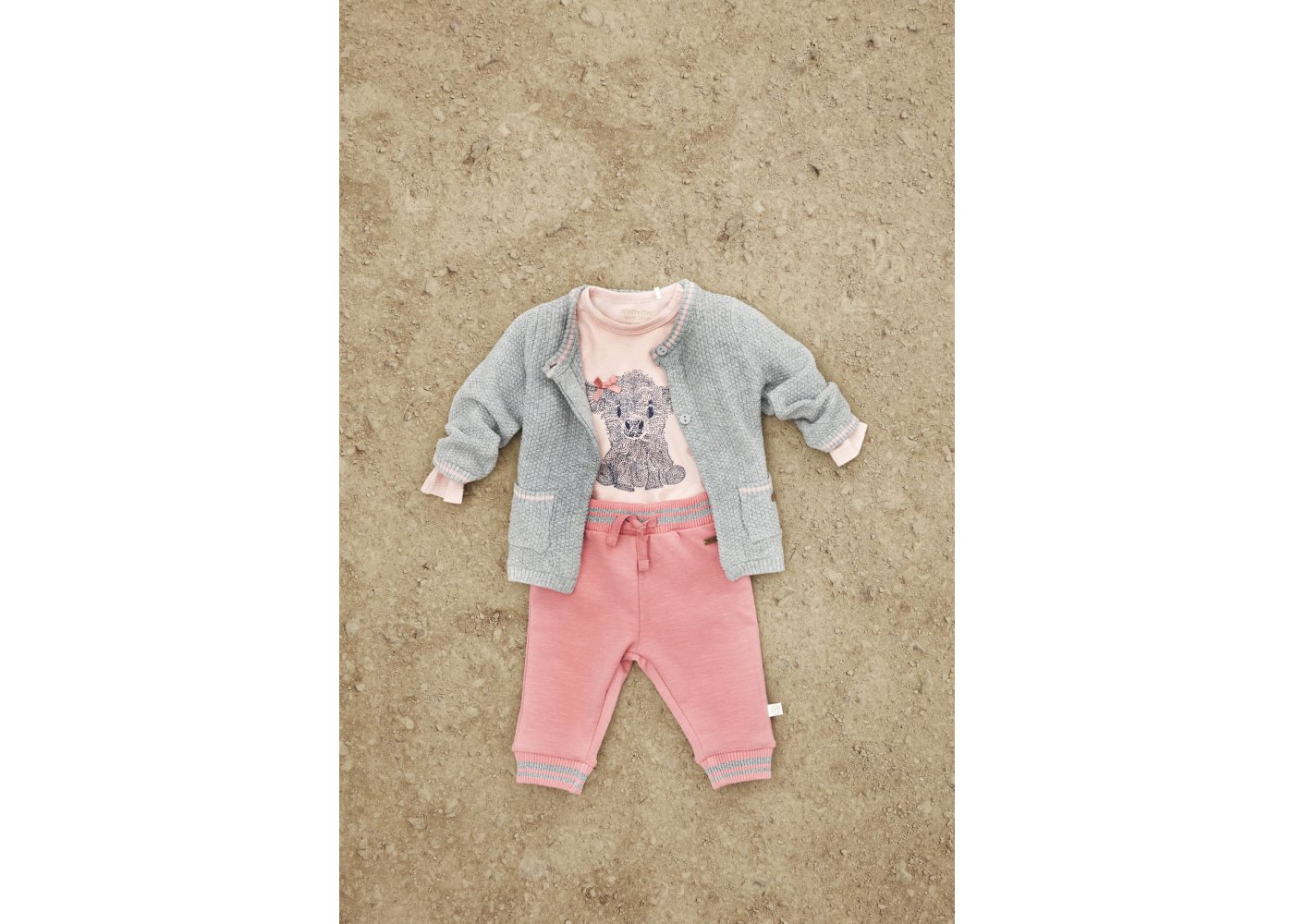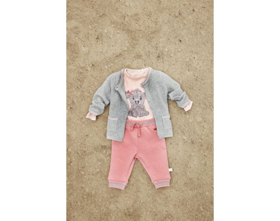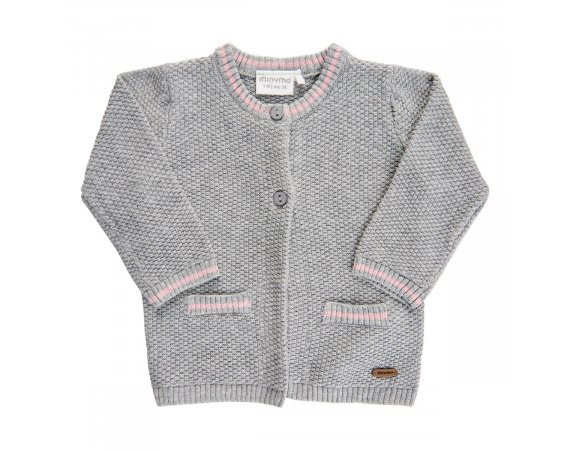 Fin og praktisk strikket cardigan i grått med flott mønsterDen søte cardiganen lukkes med knapper, og har flotte rosa striper ved håndleddene, halsen og lommene.