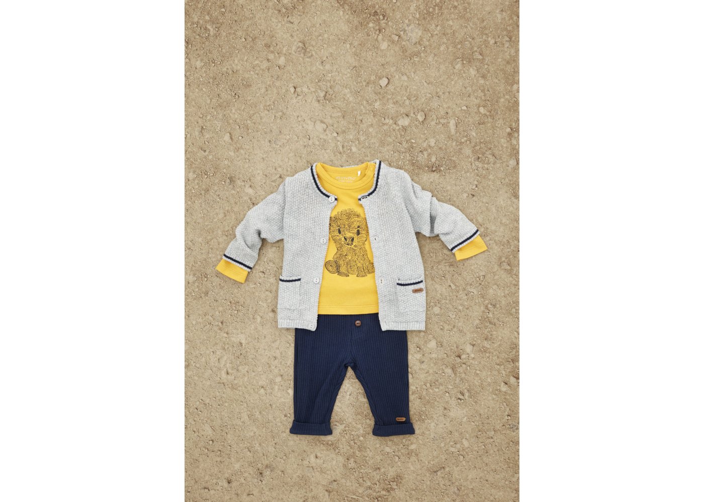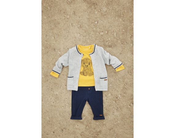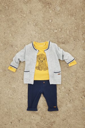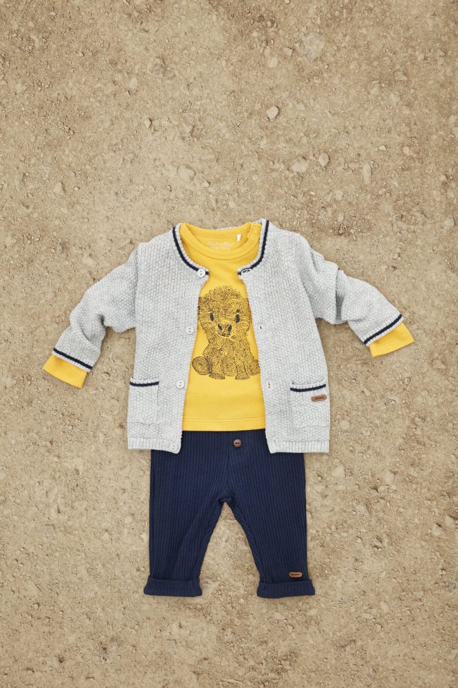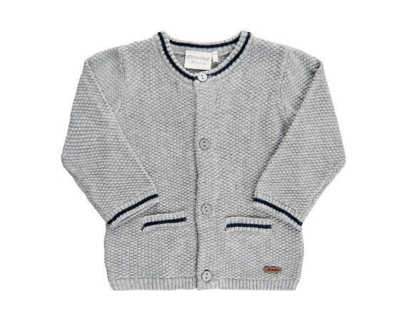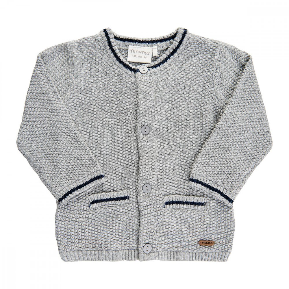 Fin og praktisk strikket cardigan i grått med flott mønsterDen søte cardiganen lukkes med knapper, og har flotte blå striper ved håndleddene, halsen og lommene.
