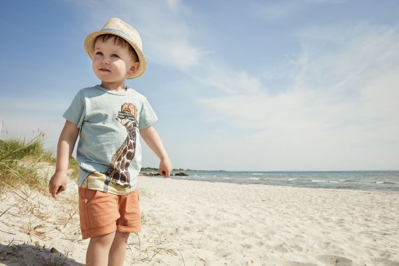 Fin kortermet T-skjorte i jersey med flott sjirafftrykkT-skjorte med ribbestrikket kant ved halsen.