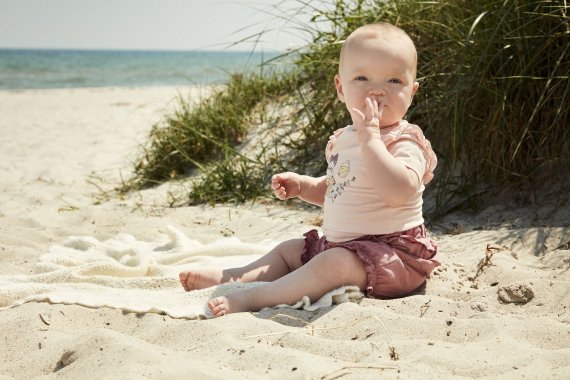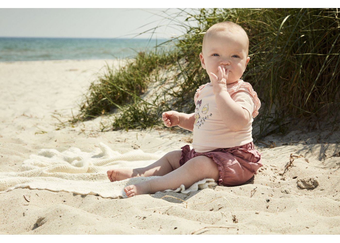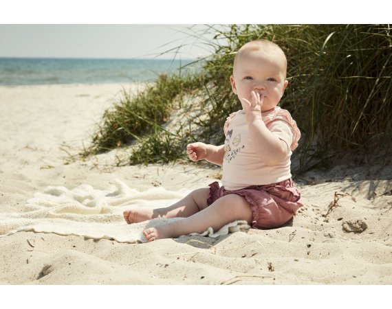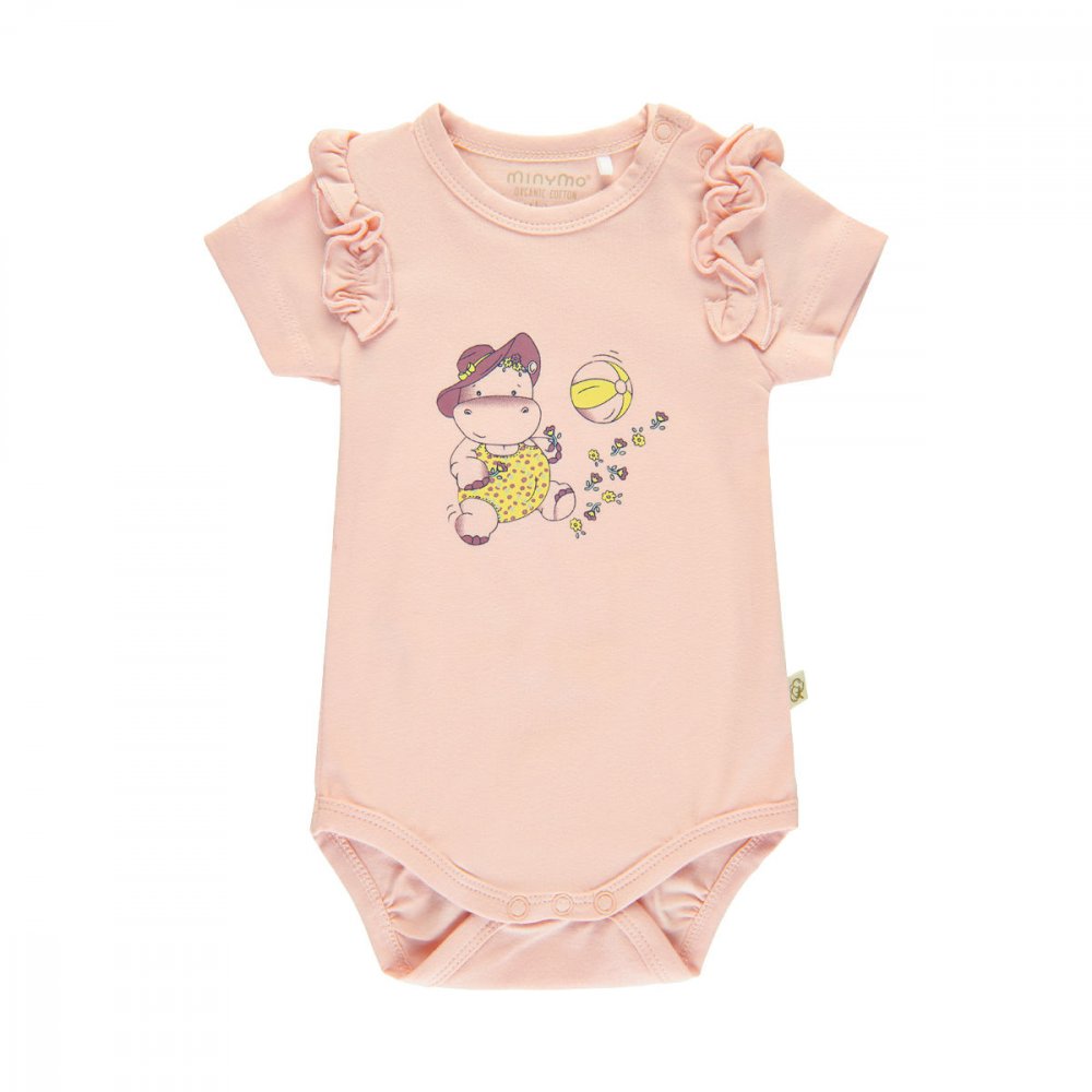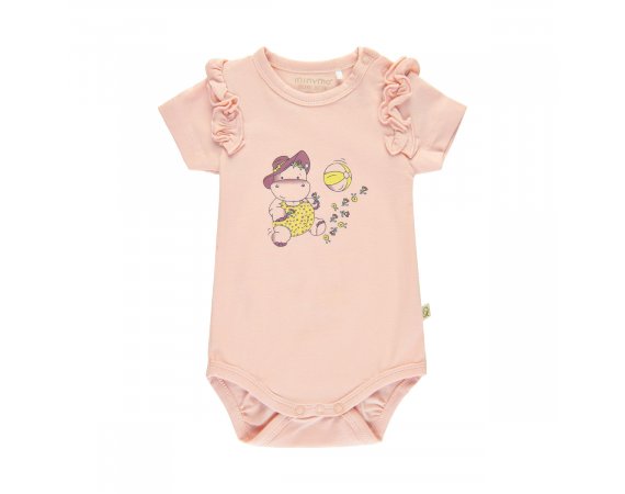 Body i behagelig og økologisk bomull, med trykk av en flodhest som leker med en ball.