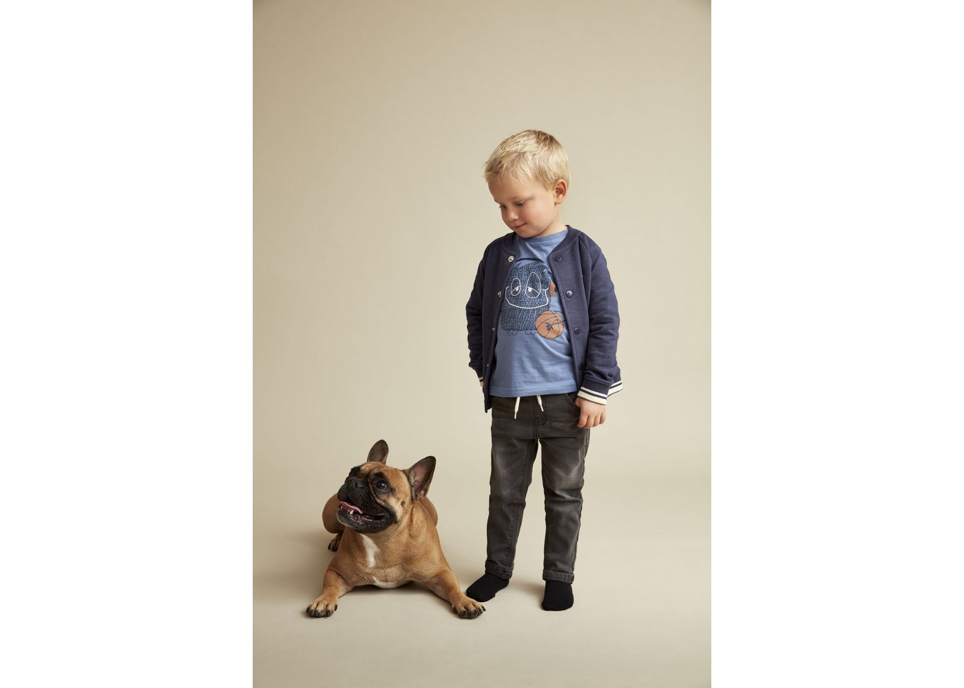 Stilig langermet trøye med elastisk kvalitet og kult trykk på brystet.