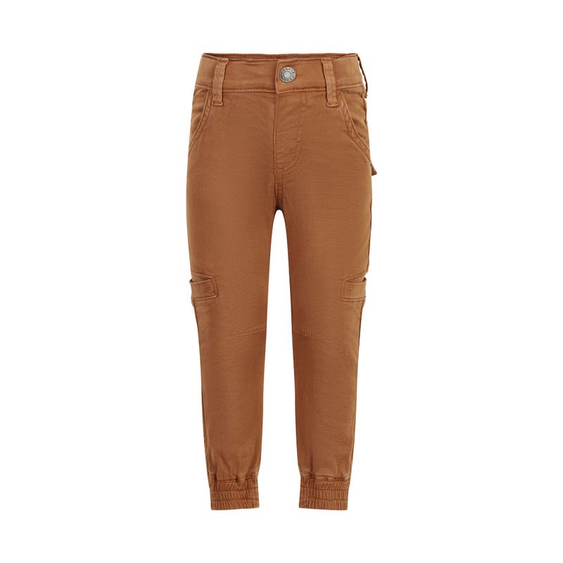 Fine guttebukser med fast linning og elastikk ved anklene.