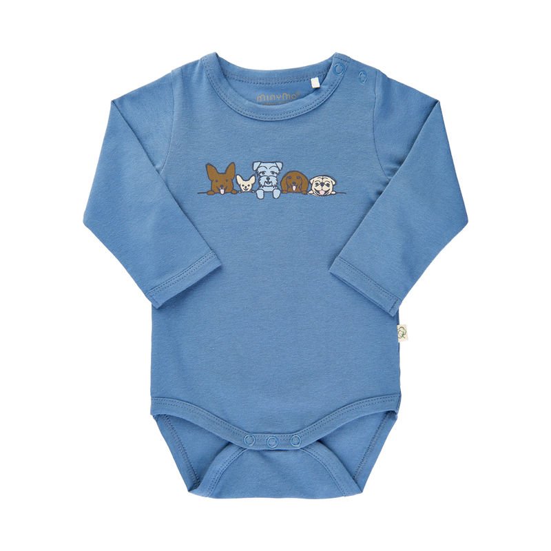 Fin body med lange ermer og gøyalt trykk.Bodyen viser et motiv av de samme hundene på både forsiden og baksiden.