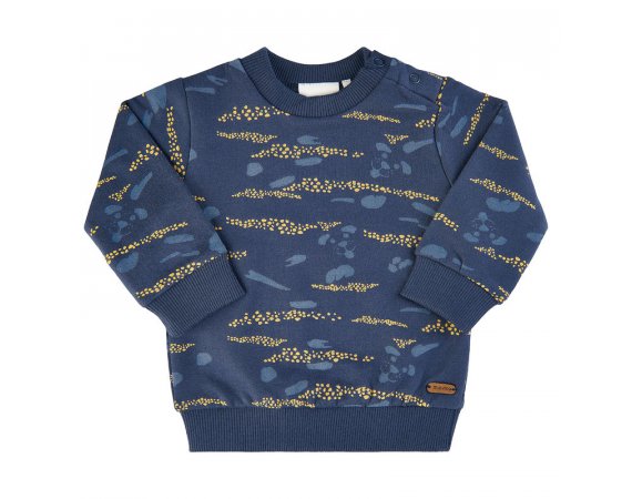 Trøyen har ribbestrikket kant langs alle åpninger, og lukkes med trykknapper på venstre skulder.