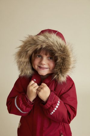 Fantastis fin figursydd vind- og vanntett vinterjakke fra MinymoJakken har lengde og spalte bak, og er fôret med myk og varm fleece. Den har avtakbar hette med fuskepels, fleece og trykknapper. Det er vindfang med tommellfingerhull, borrelås ved håndleddene, og lommer med glidelås foran. Jakken lukkes foran med YKK-glidelås.