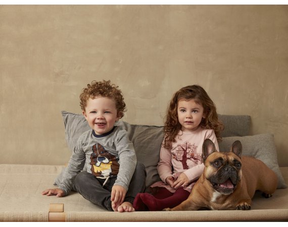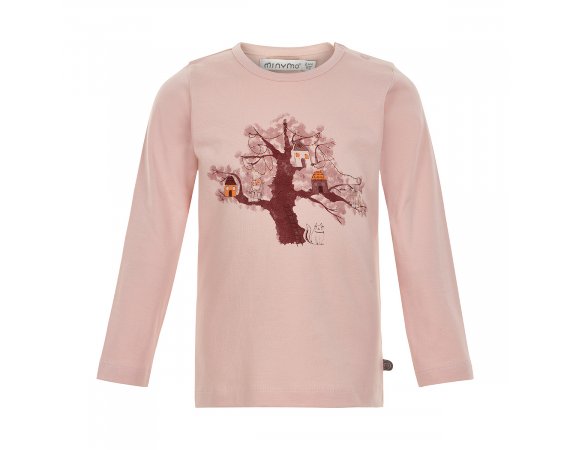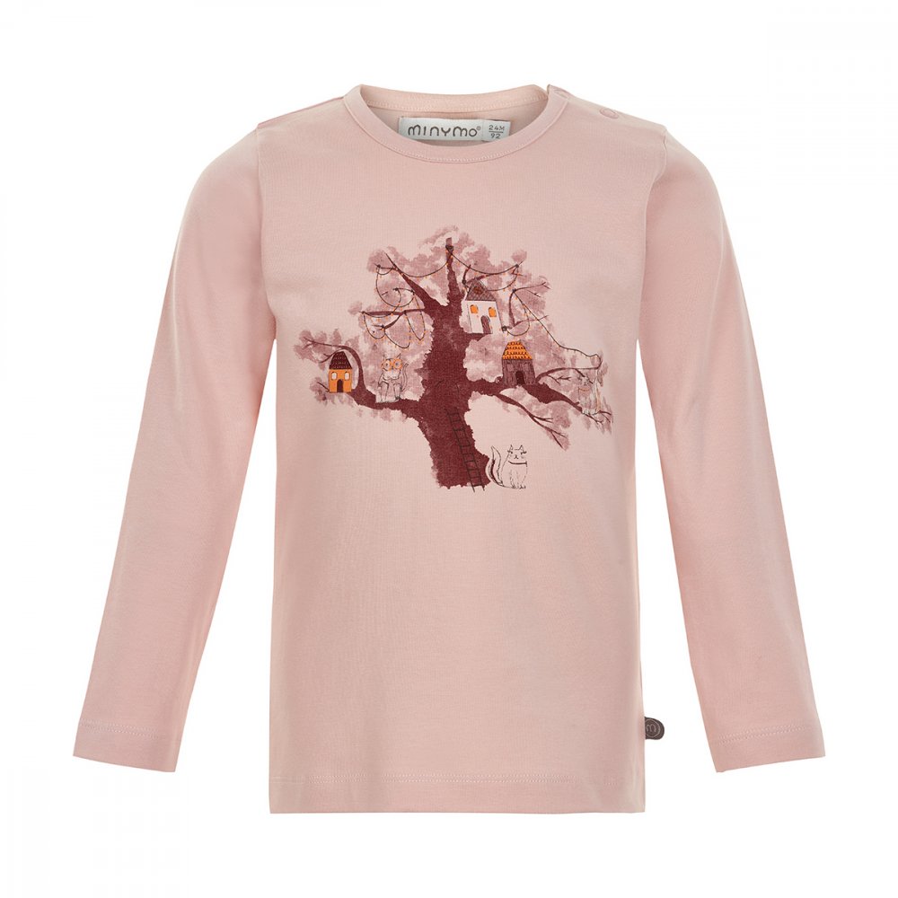 Stilig langermet trøye av Single-Jersey.Trøyen har et gøyalt trykk som viser et tre med hus foran på brystet. Den har en smal ribbestrikket kant langs halsen. Vær oppmerksom på at de er trykknapper på skulderen for str. 80-92.