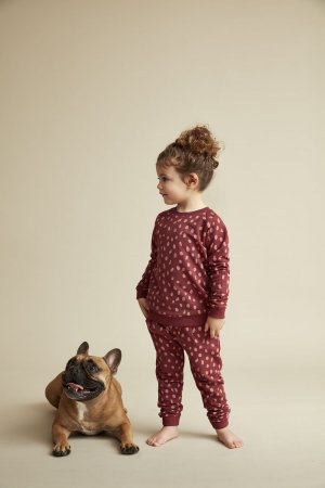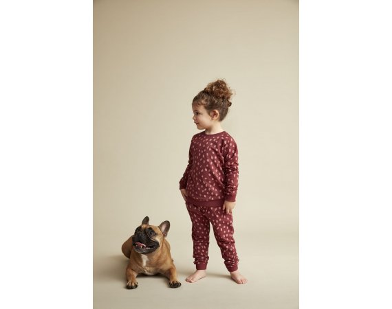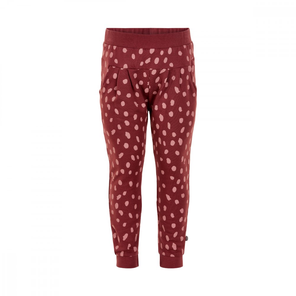 Søte joggebukser med flott prikkete mønster.Buksene har en bred ribbestrikket elastikk i livet, og bred ribbestrikket kant ved anklene.