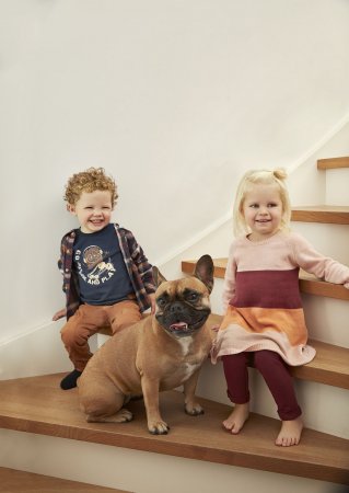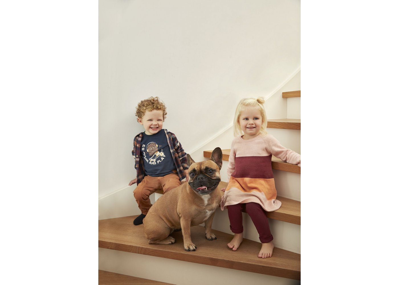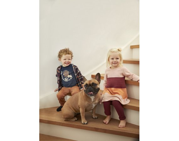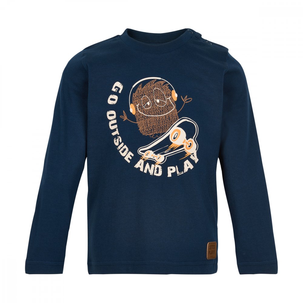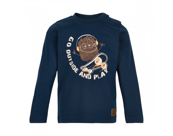 Stilig langermet trøye av herlig bomullskvalitet.Trøyen har et artig trykk foran på brystet. Den har en smal ribbestrikket kant langs halsen. Vær oppmerksom på at det er trykknapper på skulderen for str. 80-92.