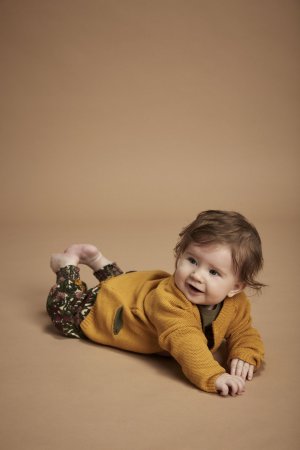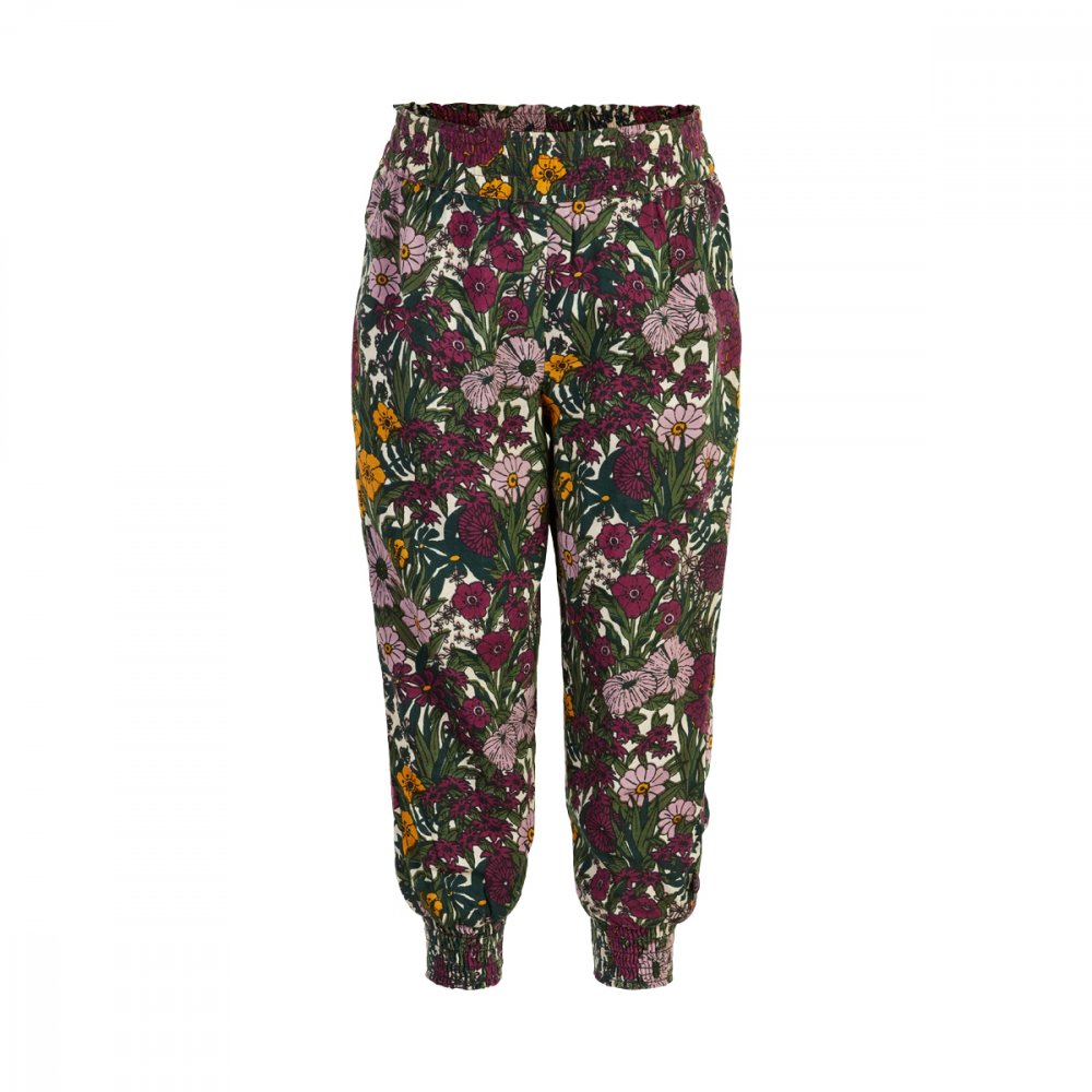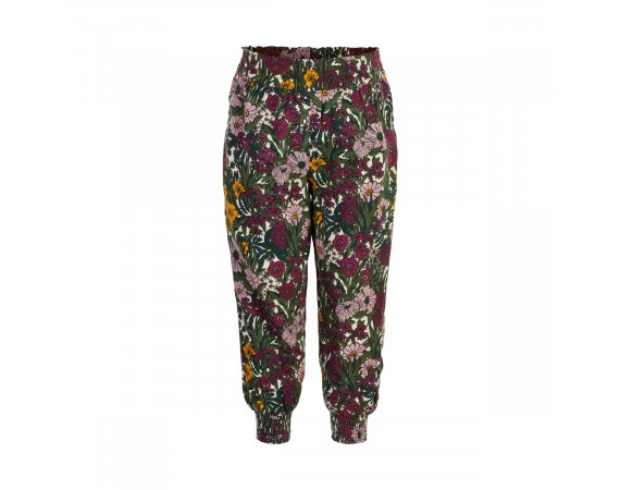 Fine, løse bukser med blomster og bred elastikk i livet og ved anklene