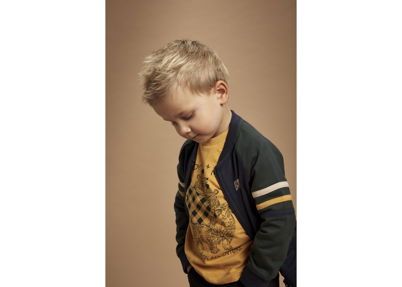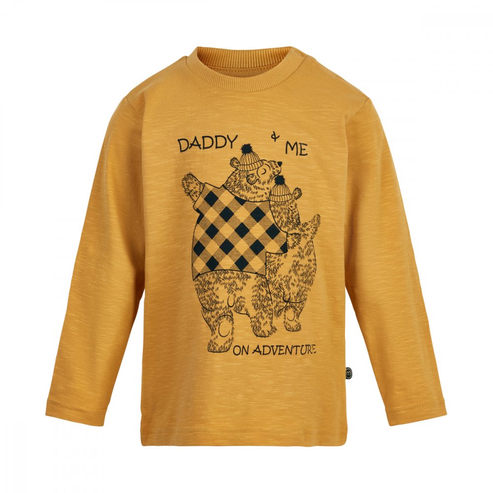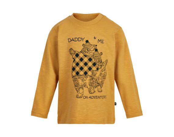 Sdøt langermet trøye med ribbestrikket kant ved hasen og søte bjørner på brystet.