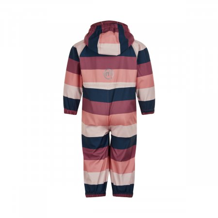 Varm stribet pige softshell heldragt i multifarve med elastik ved ærmer, bund og hætte.