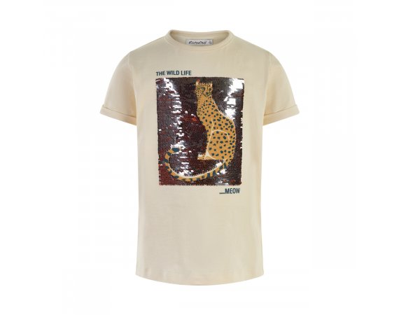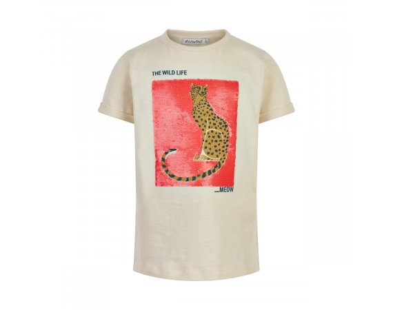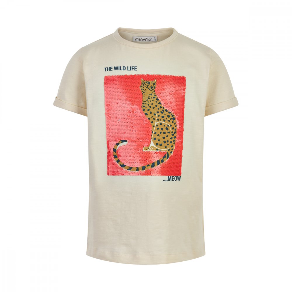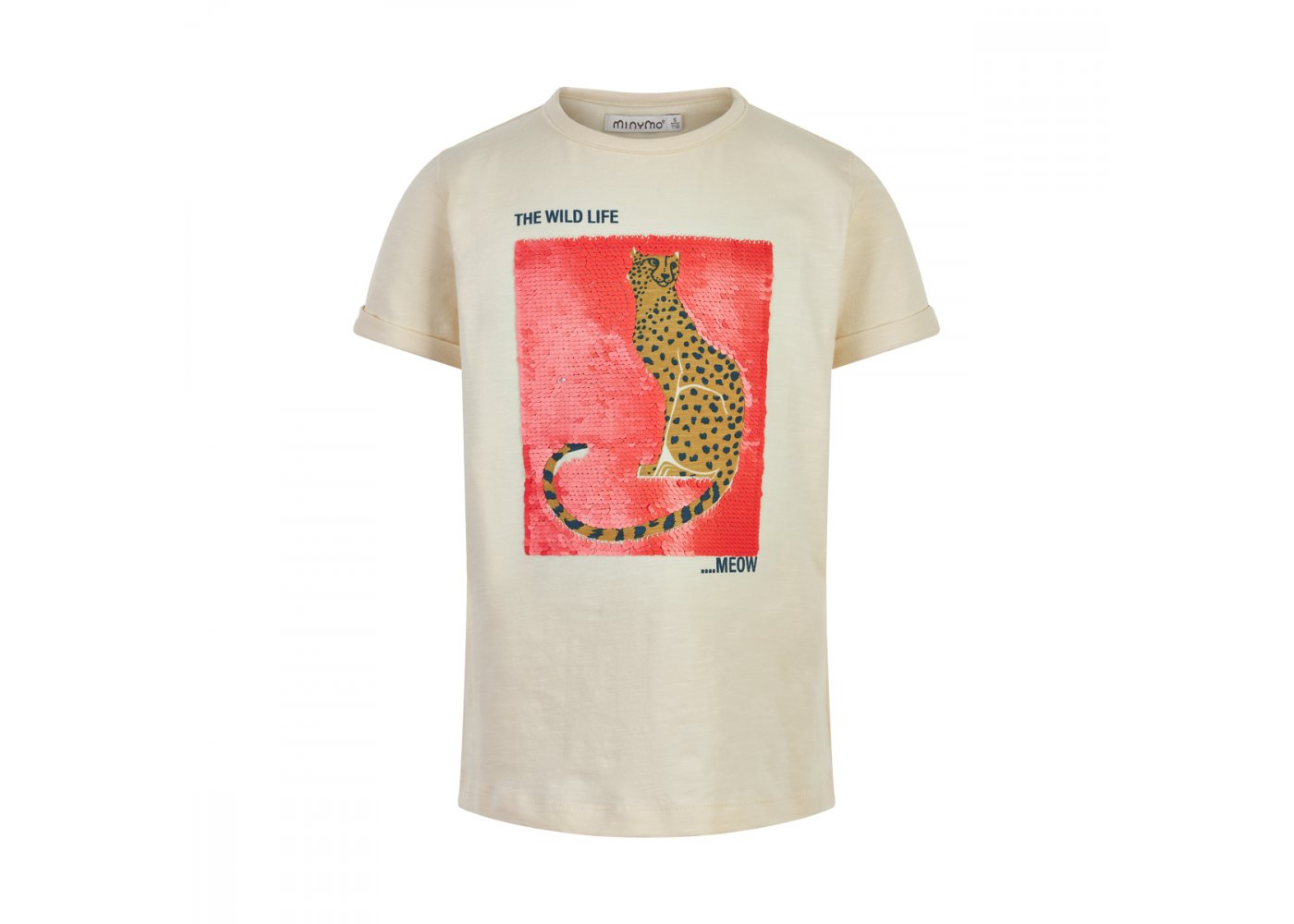 Kortærmet off-white t-shirt med leopard og paljetter fra Minymo.