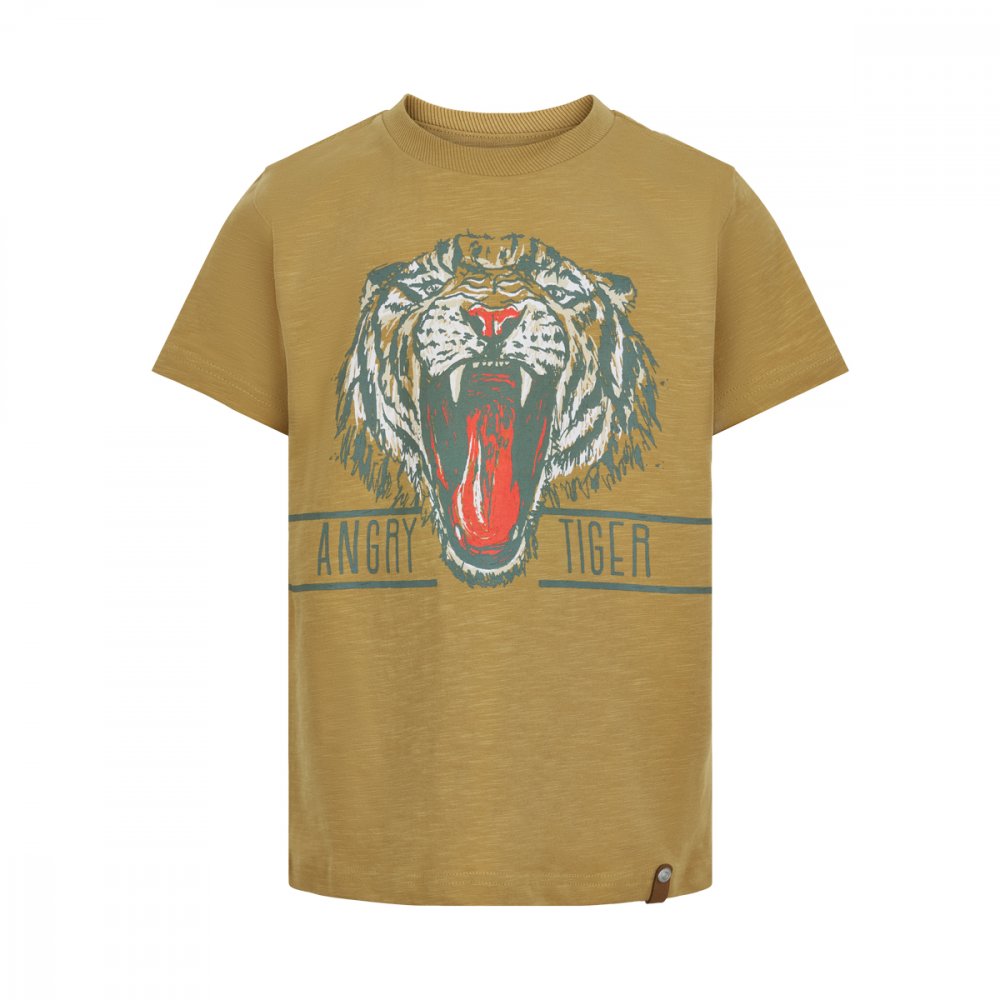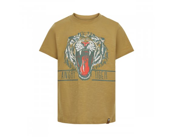 Skøn ensfarvet t-shirt i gul med flot løvemotiv foran.T-shirten har korte ærmer, rib i halsudskæring og den er fremstillet i en blød og strækbar bomuldskvalitet.