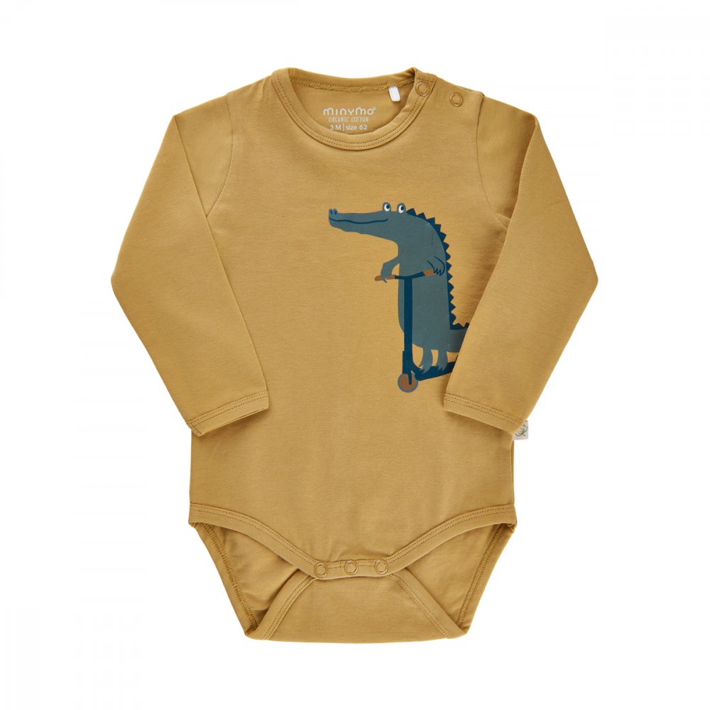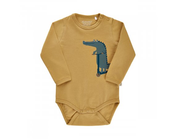 Sej langærmet body i gul farve med sjovt krokodille motiv foran.