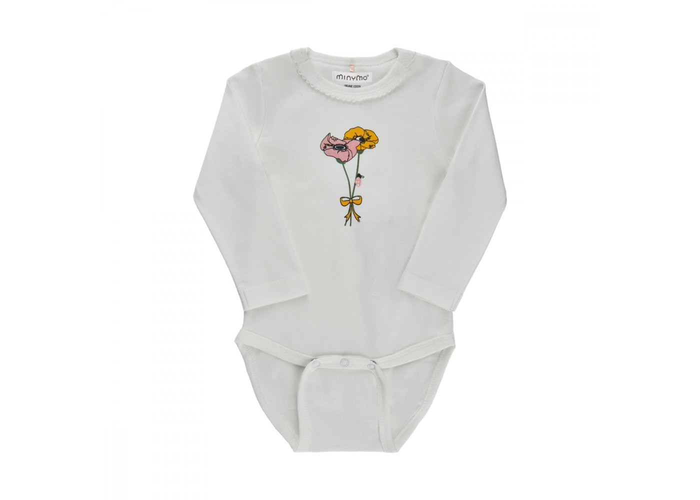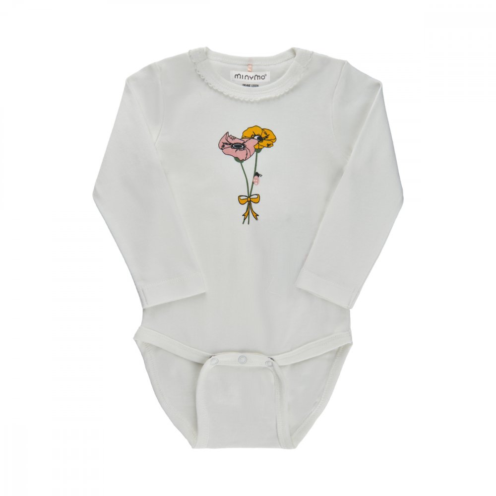 Bodyen har en fin broderet kant i halsudskæring og lukkes med trykknapper på venstre skulder og imellem ben. Bodyen er lavet i en lækker økologisk bomuld.Tekstil: 100 % bomuld
