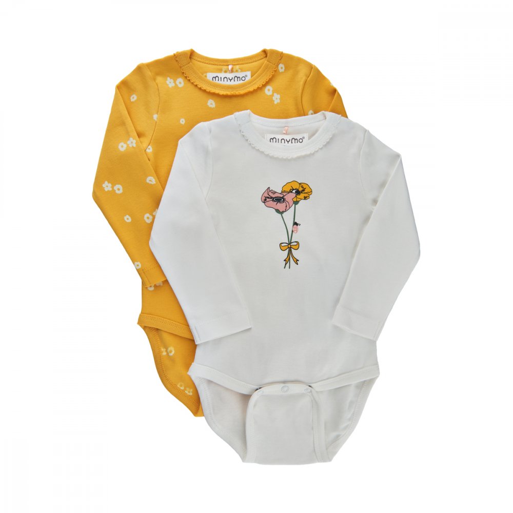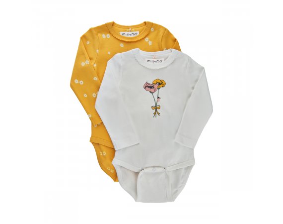Sæt med to fine bodyer i gul og hvid farve med lange ærmer og print.