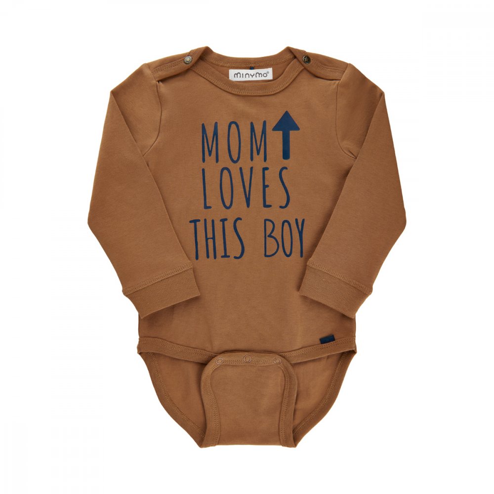 Lækker langærmet body i brun med print fra Minymo.