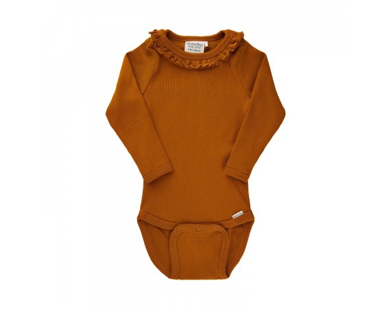 Langærmet rib body i dejlig varm brændt mandelbrun fra Minymo.