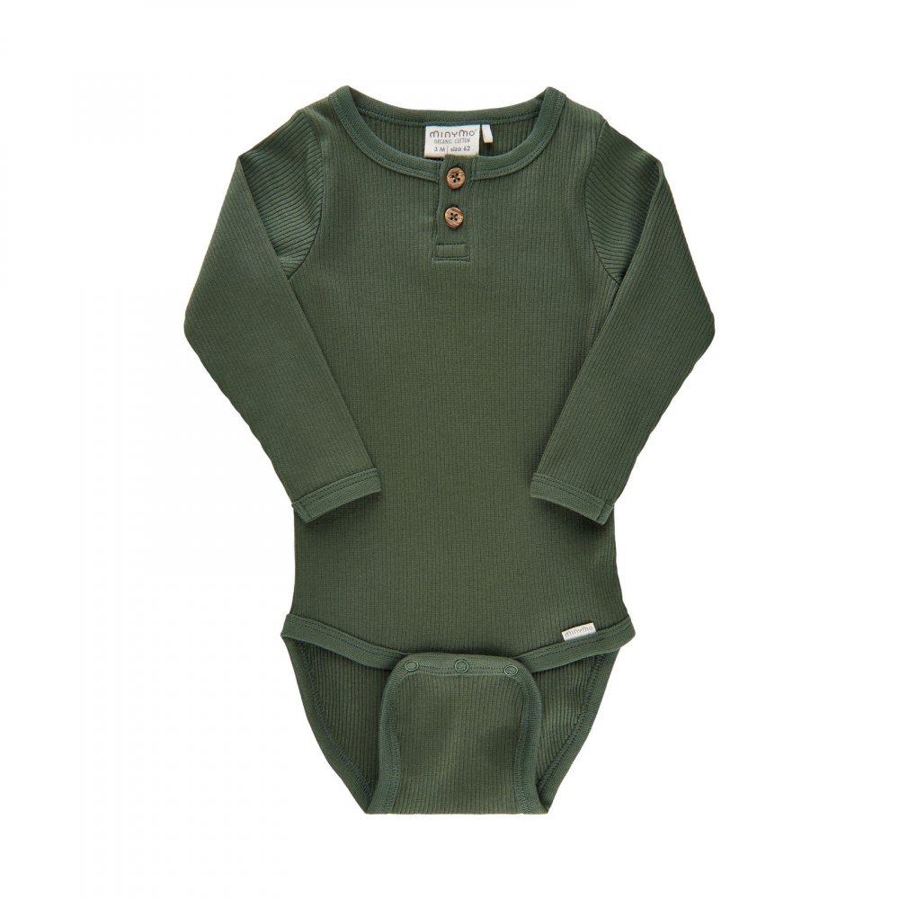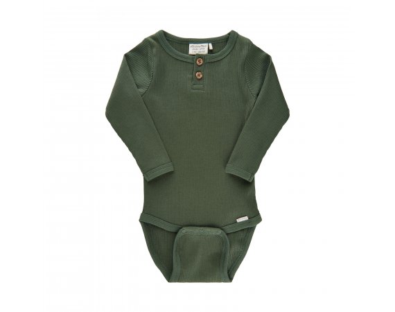 Ensfarvet body med faste kanter i alle åbninger. Bodyen er lavet i en lækker strækbar bomuld. Den har stoplelukning med knapper i halsåbning og lukkes med trykknapper imellem ben.