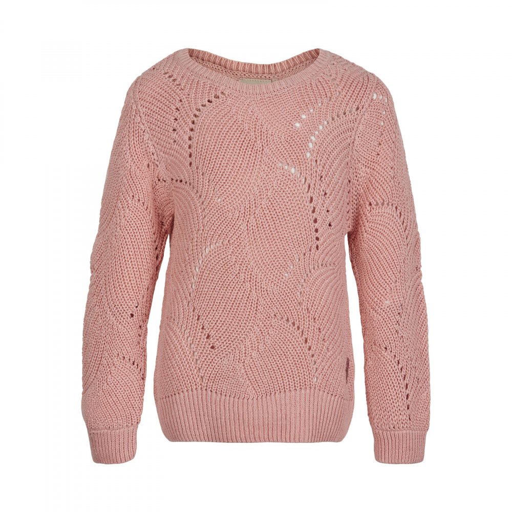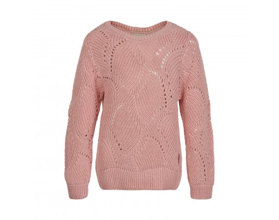 Minymo pullover i rosa med flot strikmønster.