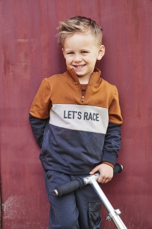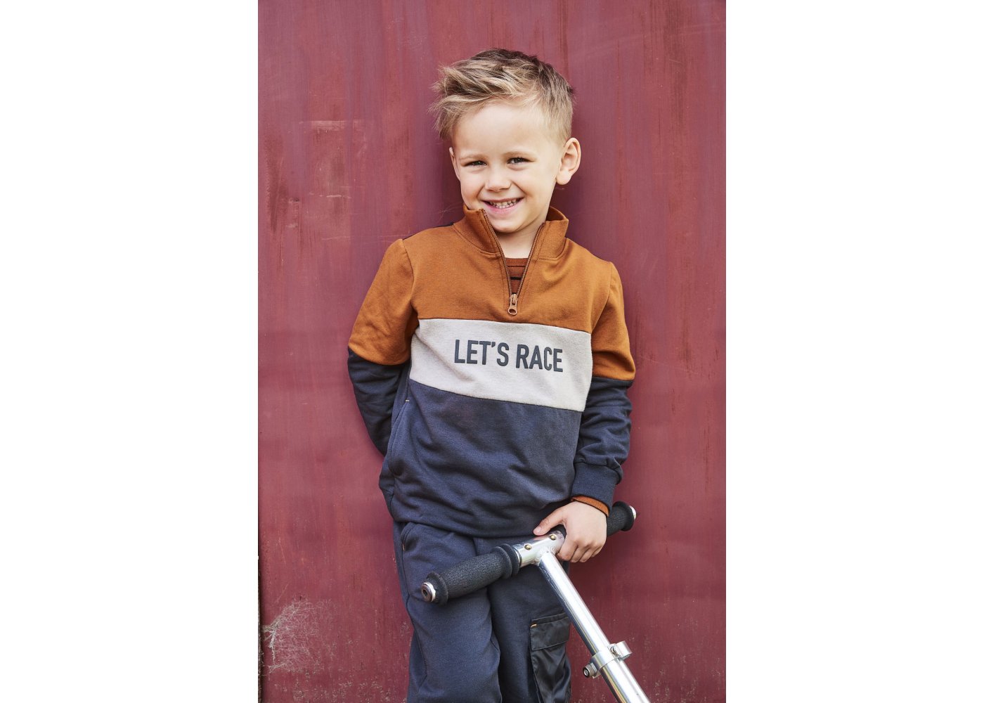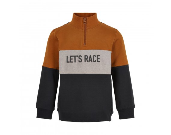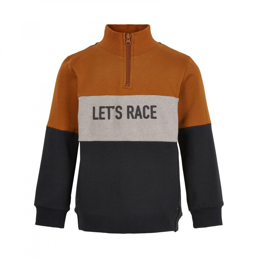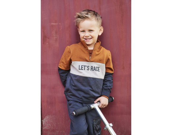 Sweatshirten har en bred ribkant i alle åbninger og en fin skrift på brystet med teksten- Lets race.