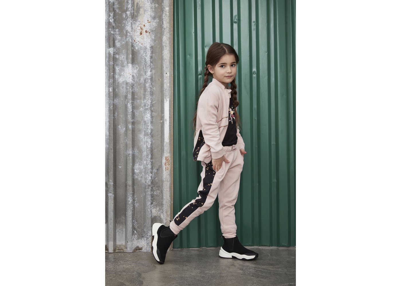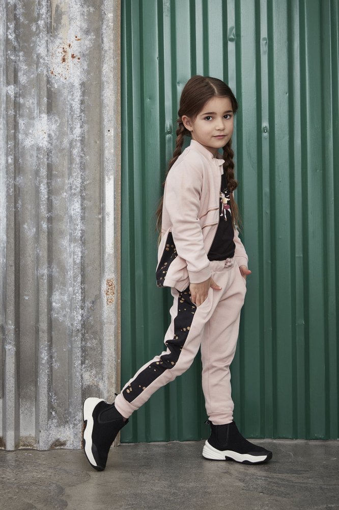 Fin joggebukse med stilige bronsefargede tittekanter og prikkete stoffpaneler i sidene. Buksen har ribbestrikk ved anklene, og justerbar elastikk og snørebånd i livet. Snørebåndet har snorstopper.Kombiner den med jakken i samme design, og få et stilig, praktisk og brukbart sett.