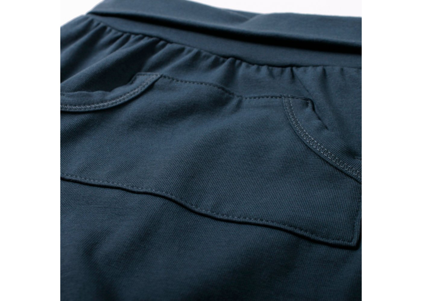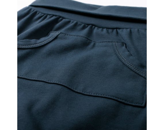 Klassiske, myke og gode bukser med kengurulomme.Buksen har ribbestrikket kant ved anklene, og en bred ribbestrikket kant i livet, som kan brettes ved behov.