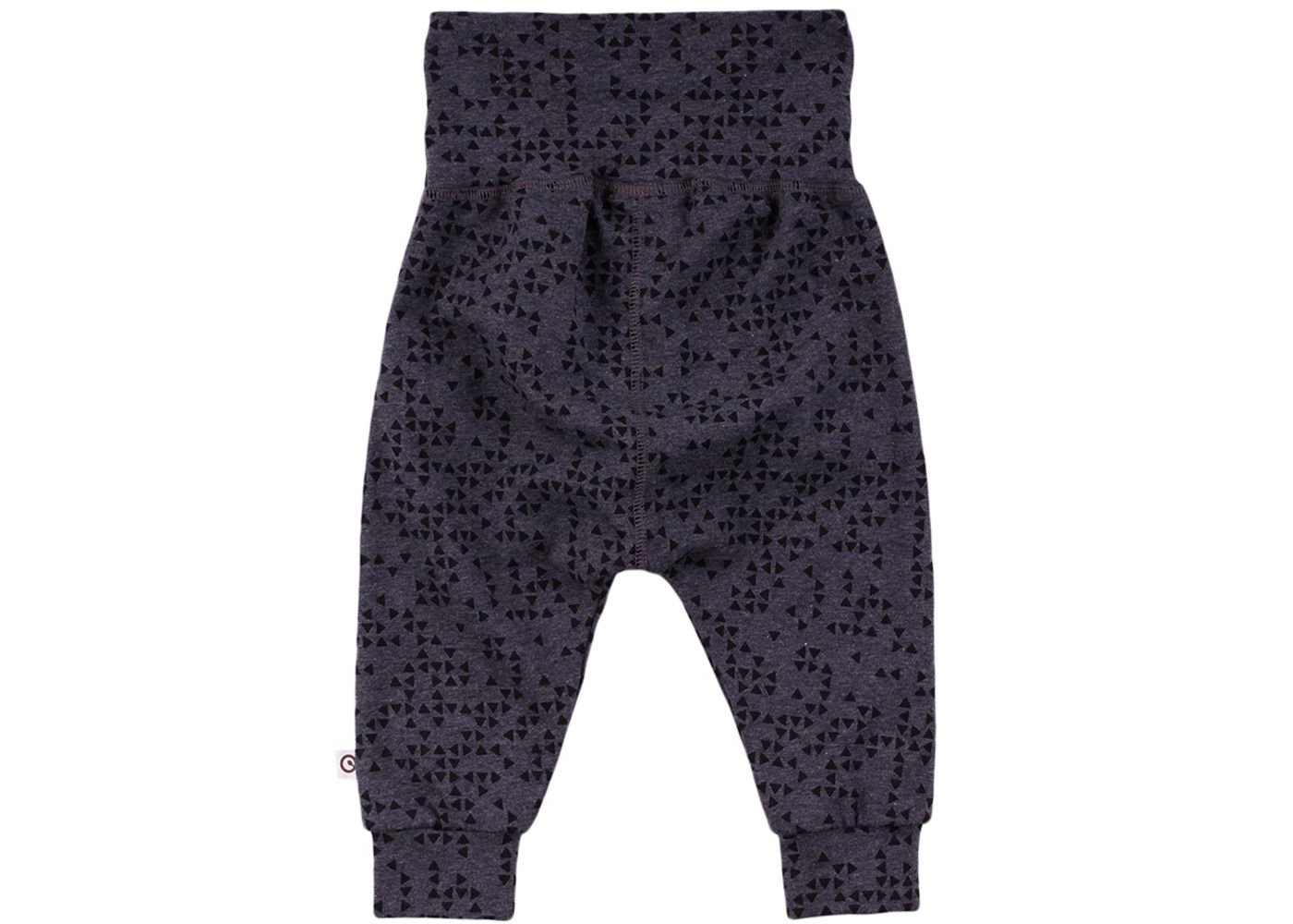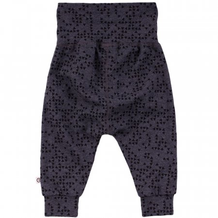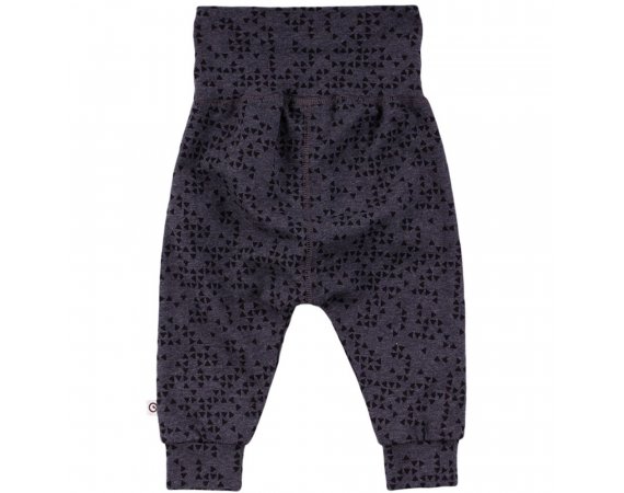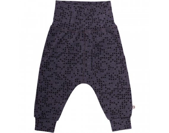 Myke og gode bukser med vidde og fine trekanter.Buksen har ribbestrikket kant ved anklene, og en bred ribbestrikket kant i livet, som kan brettes ved behov.