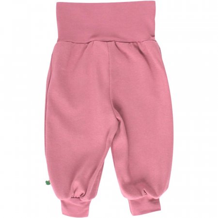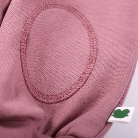 Klassiske ensfargede bukser med lapper på knærne.Buksen har ribbestrikket kant ved anklene, og en bred ribbestrikket kant i livet, som kan brettes ved behov.