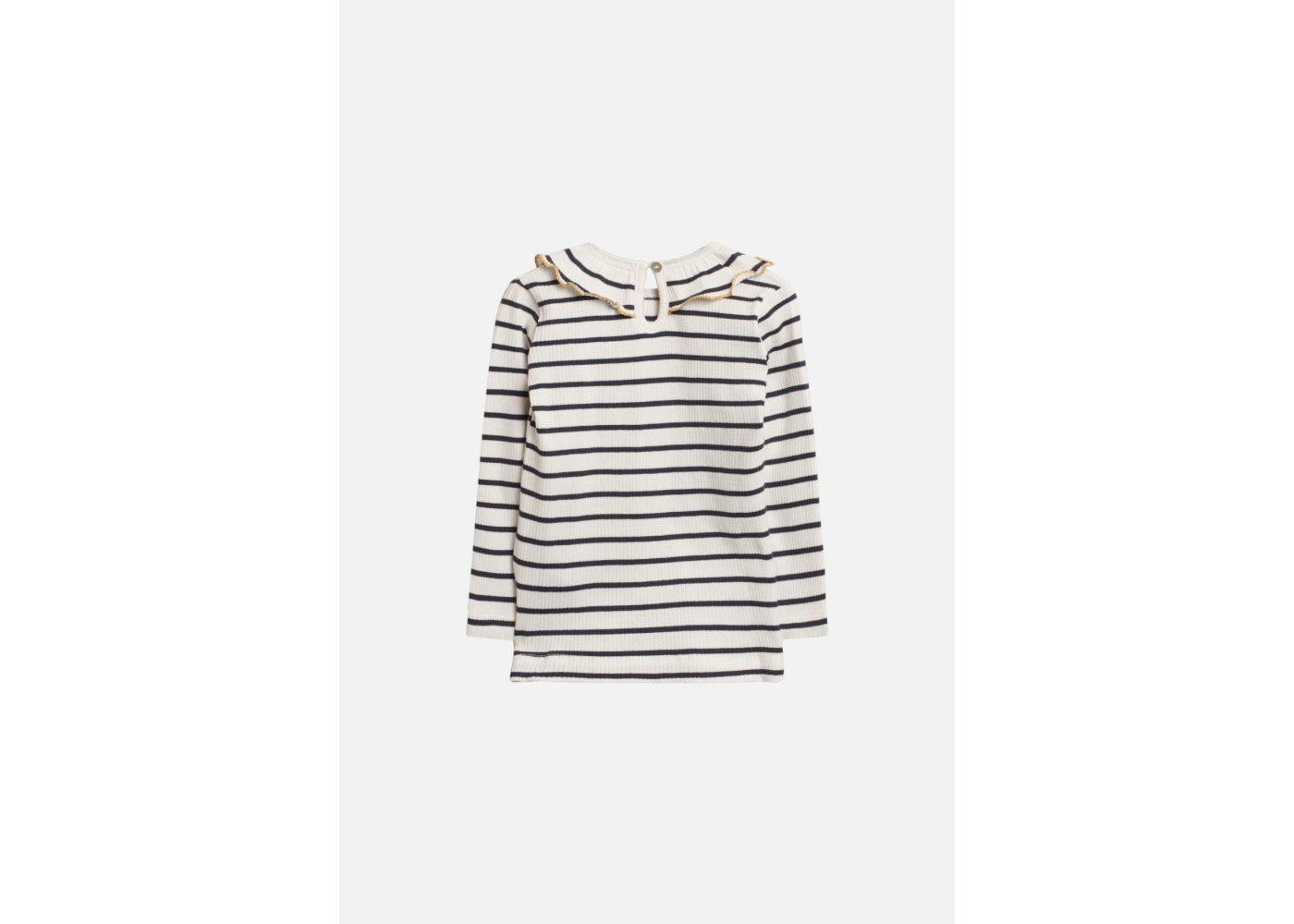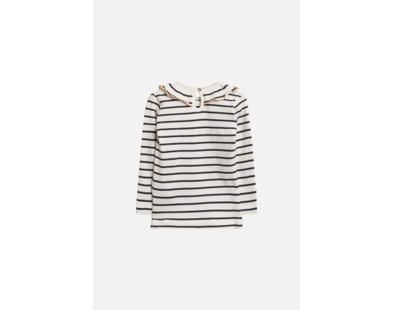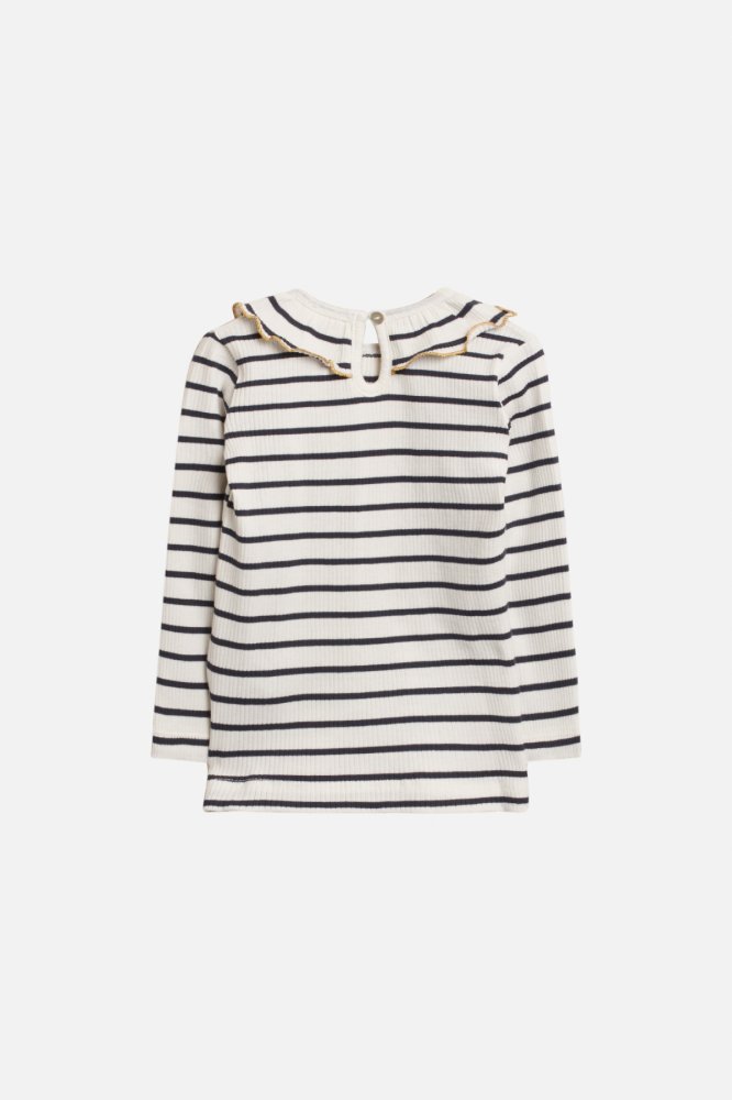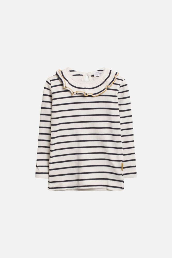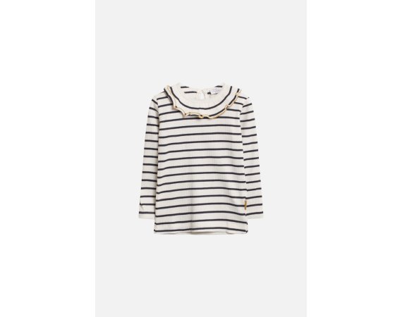 Langermet T-skjorte i myk jersey, med volangkrage som har bronsekant.