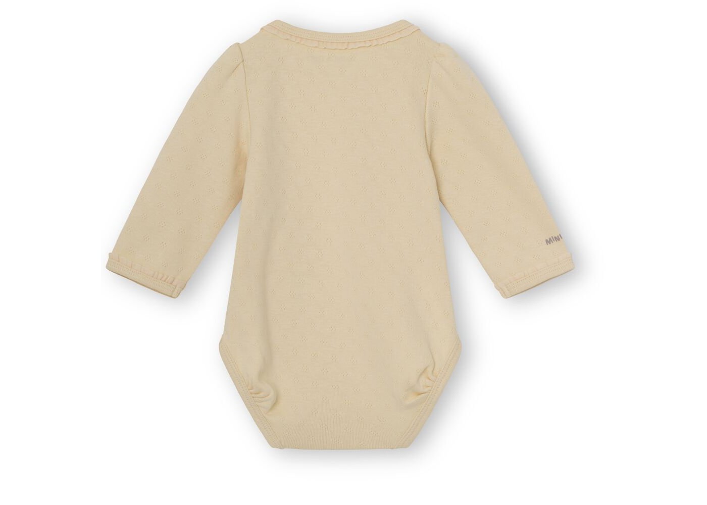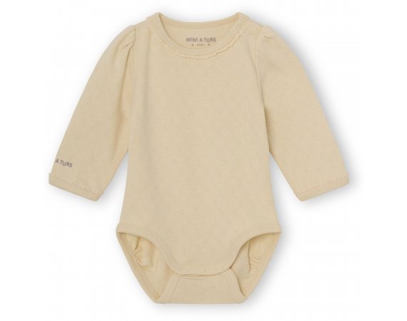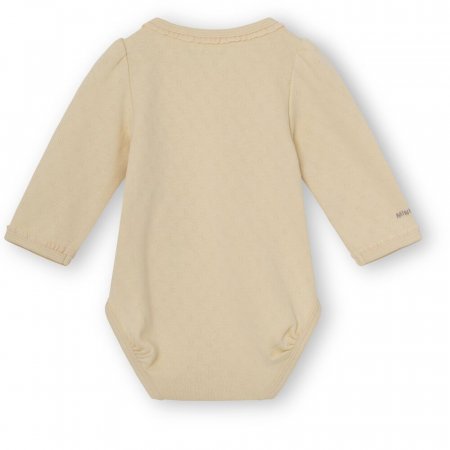 Body med lange ermer av lekker pointelle-jerseyFin og enkel body med draperinger ved skuldrene, og søt elastisk blonde ved halsen og ermene - hvilket gjør at den kan brukes til både hverdag og fest.