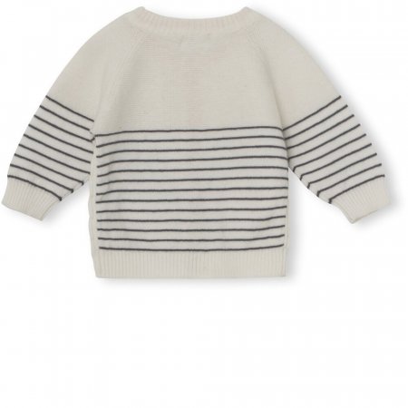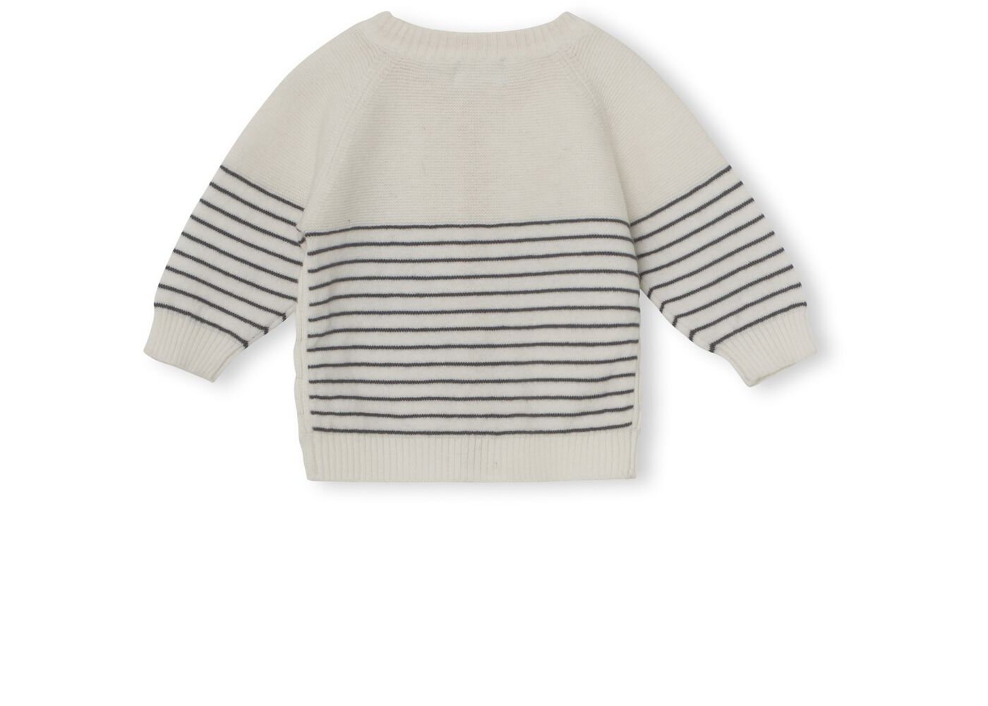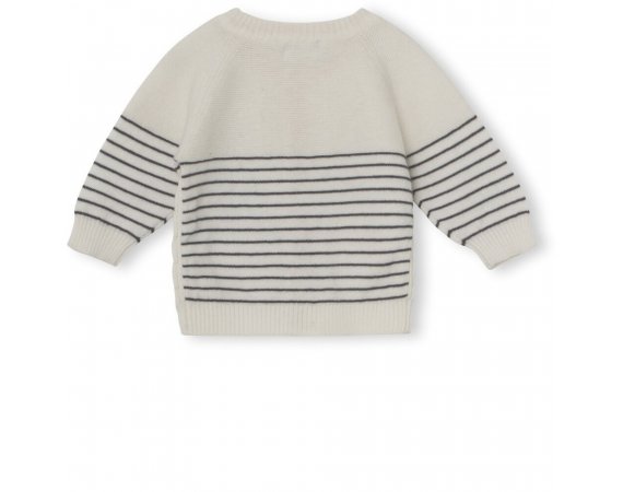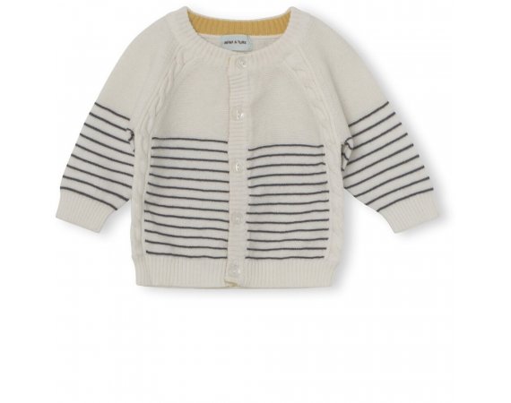 Stilig strikket cardiganVarm og allsidig cardigan med striper og snodd strikkemønster nedover langs sidene.