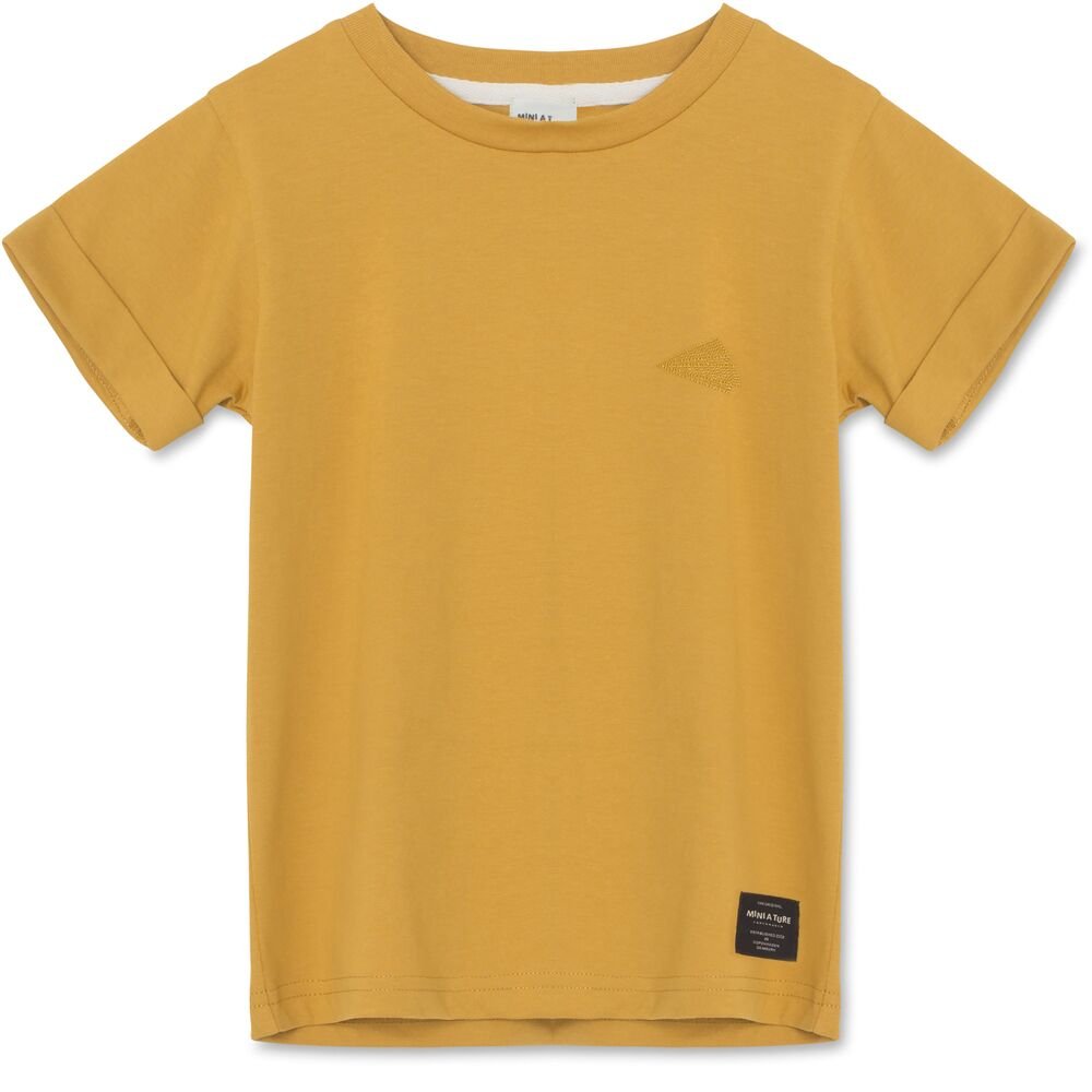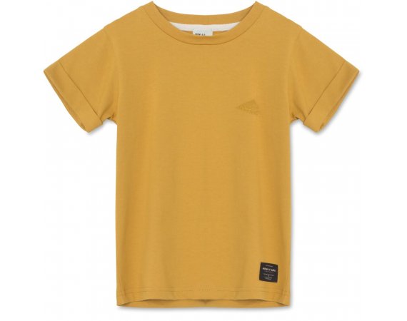 T-skjorte med korte ermer av herlig økologisk bomullFin og enkel T-skjorte med brettekant på ermene, og en liten brodert applikasjon på venstre side av brystet.