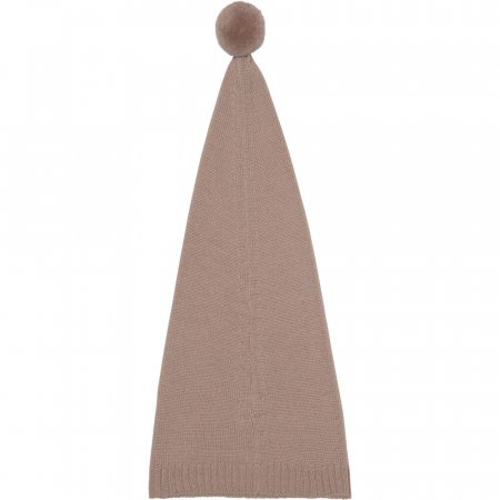 Strikket nisselue med "Mini Q Ture"-tekst på