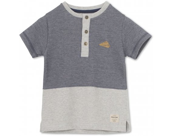 Stilig kortermet T-skjorte med rund halsT-skjorteen har stolpelukking med knapper foran, og et flott broderi på venstre side av brystet.