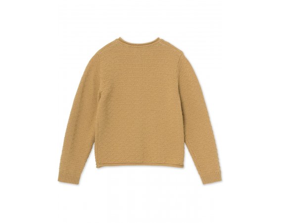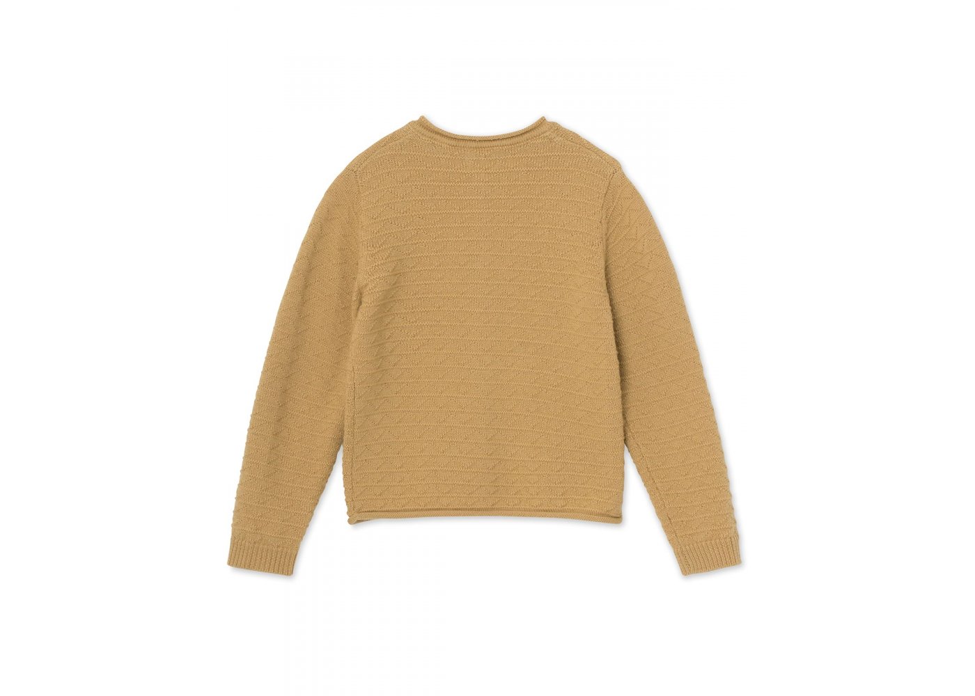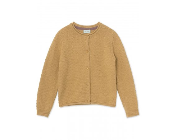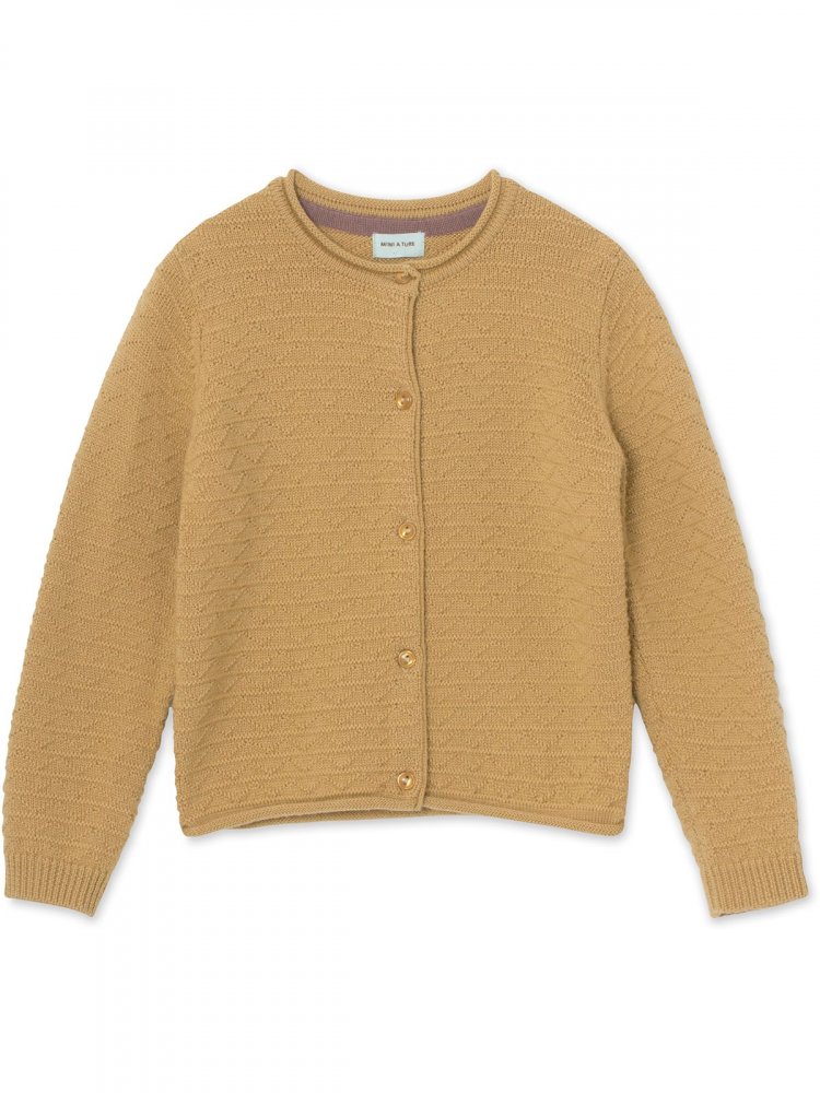 Fin karryfarget cardigan.Cardigan med lange ermer og et fint strikkemønster.