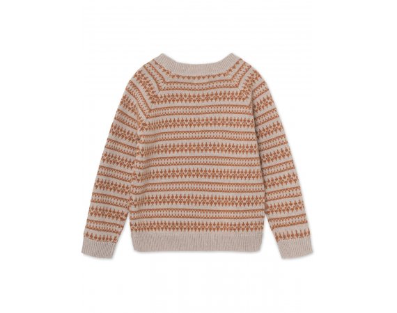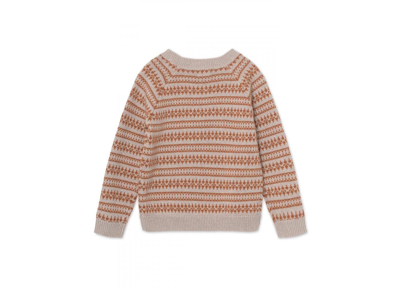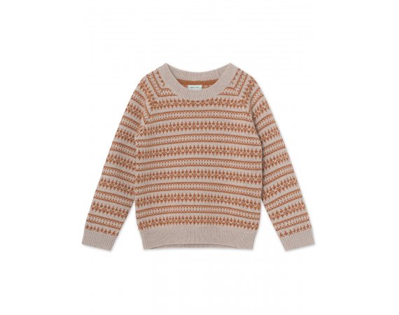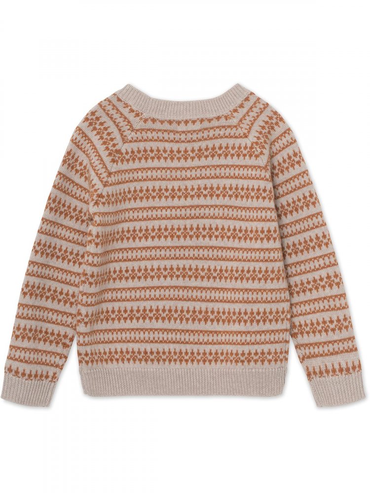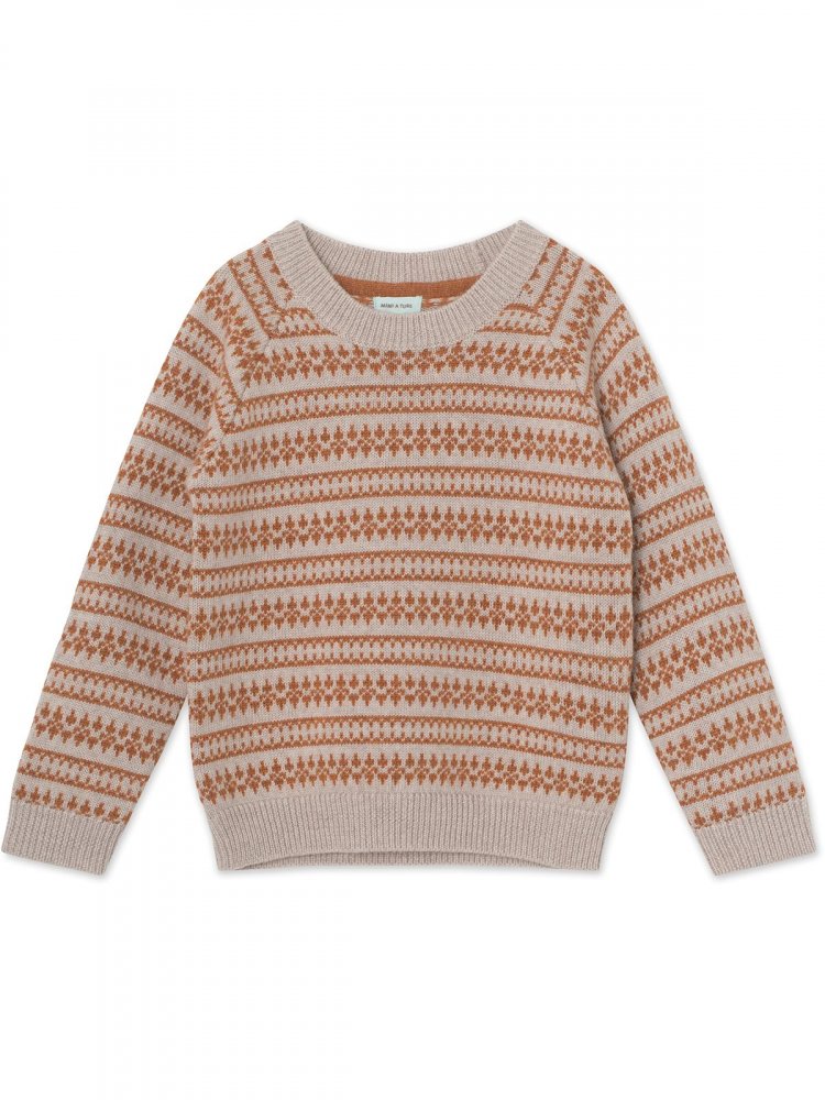 Fantastisk fin og varm genser med islandsk strikkemønster.Genseren har lange ermer og en bred ensfarget ribbestrikket kant langs alle åpninger.
