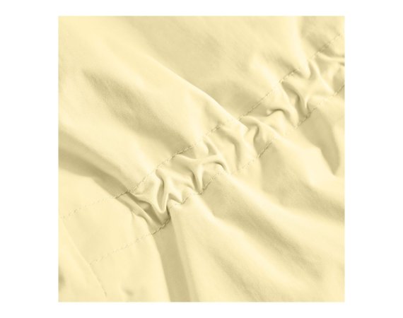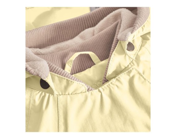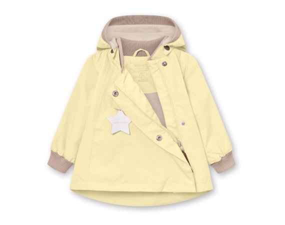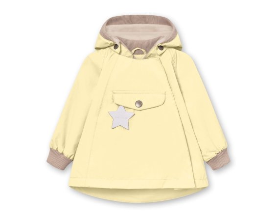 Sommerjakken har en avtagbar spiss hette med en elastisk vindbeskyttelse som holder vind og regn ute. Den har ribbede mansjetter ved håndleddene. Merk at størrelser opp til 86 cm (18 måneder) har ribbekant i halsen, mens større størrelser har en vanlig krage.